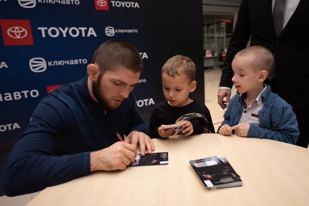 Караваем и особым южным гостеприимством встретил легендарного спортсмена детский казачий коллектив. Хабиб Нурмагомедов, внушающий уверенность так же, как и автомобили Toyota, поприветствовал гостей автоцентра, раздал автографы поклонникам боёв UFC и ответил на вопросы публики. Темы, вызвавшие интерес у фанатов Хабиба, пестрили разнообразием — от дальнейших планов спортсмена в карьере до его предпочтений в области футбола. Атмосферу кавказского колорита мероприятиям добавили выступления танцевального коллектива «Нарт», а также специальное оформление шоурумов в стиле боевых искусств.